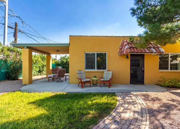 This Chandler villa has an equipped kitchen with oven and a dishwasher for comfortable stay. Little Caesars as a dining choice is in the immediate vicinity of the Chandler property.
